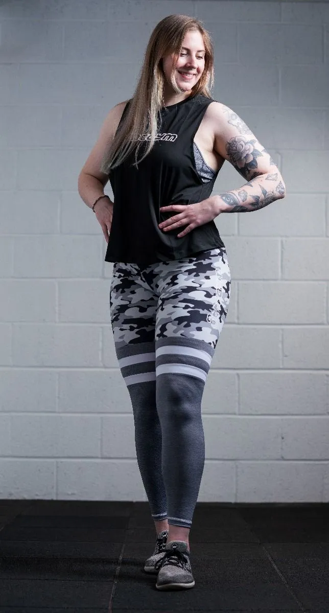 The @thegym Grey-Camo leggings are designed for comfort, whether wearing them casually or during a workout. They are opaque, making them “Squat Proof”, and giving you the confidence wearing these stylish leggings. The @thegym leggings are made up from 73% Polyester 27% Spandex. the High-Waist offers a flattering look, while being functional.Â