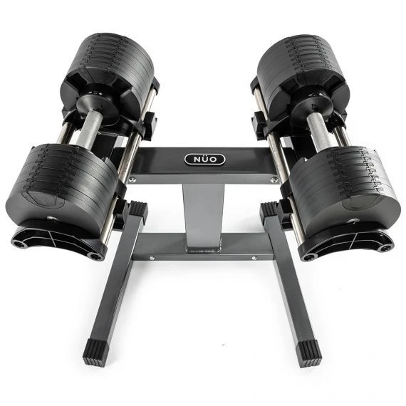 compact dumbbell pair with quickly adjustable weight sizes with knurled dumbbell handles