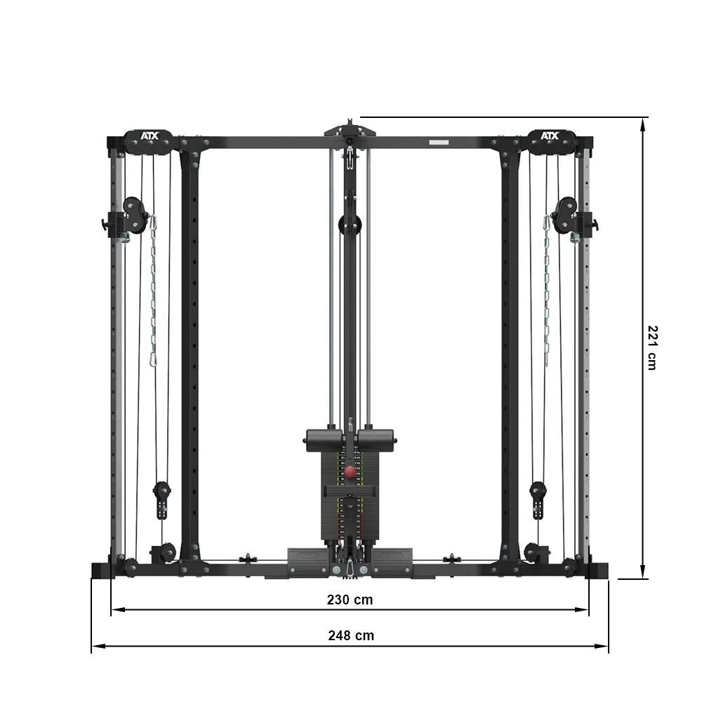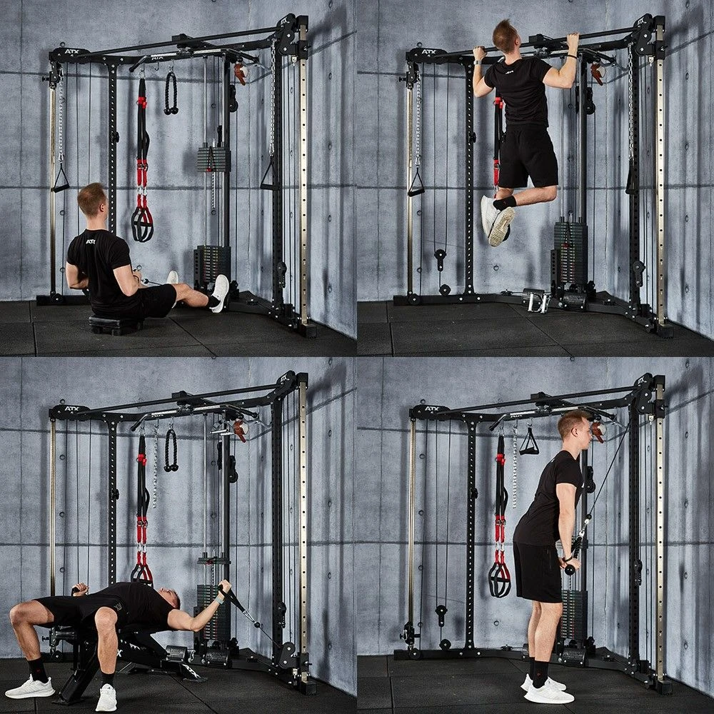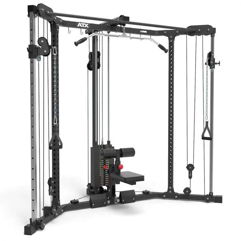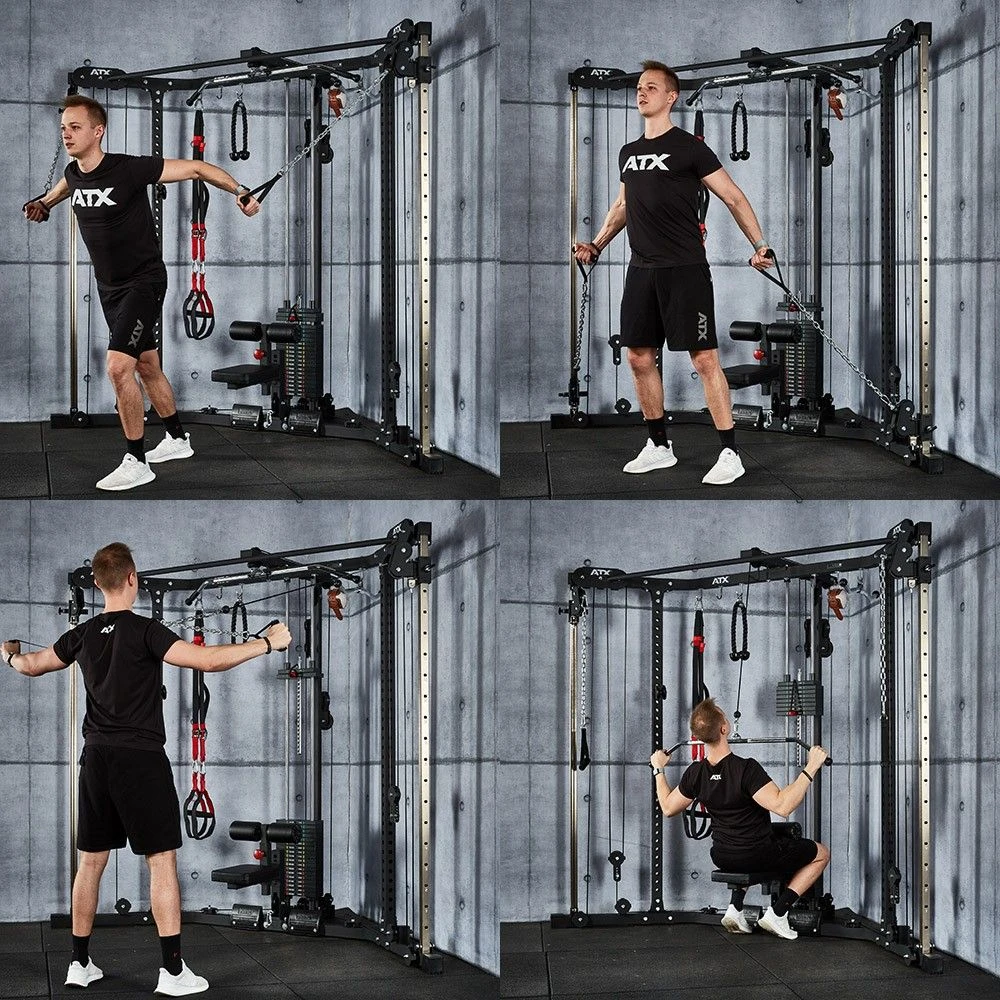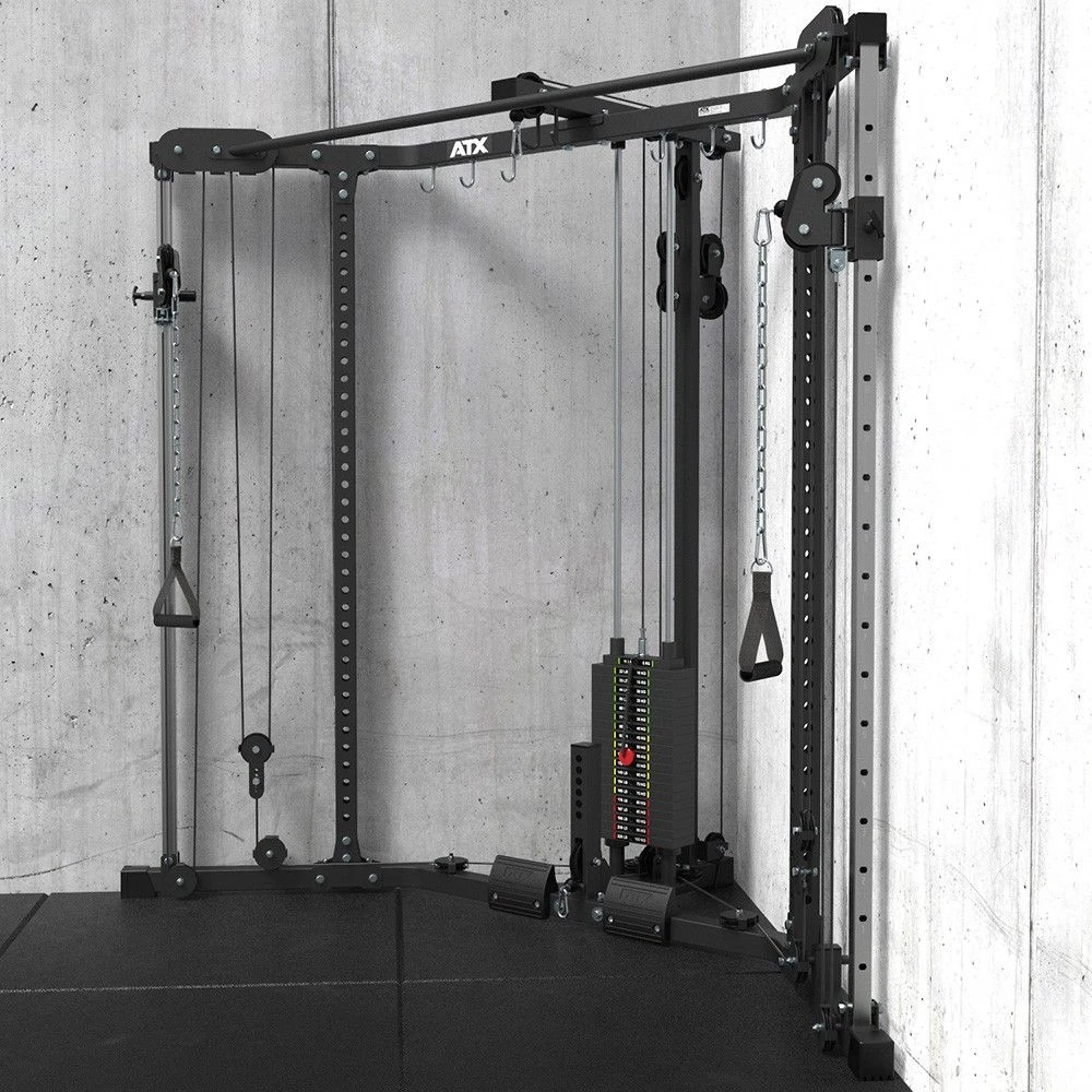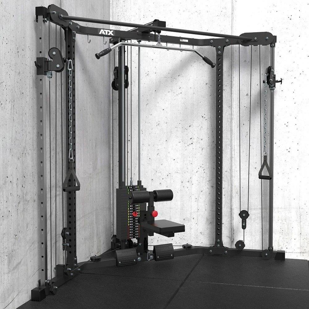 The ATX Cable Corner Station combines a professional lat pulldown and a multifunctional cable crossover unit in one compact device. Whether lat pulldowns, seated rows or cable pull/crossover exercises, the Cable Corner Station can do it all, and really well. In addition, the special and compact design enables the device to be placed in a corner of the room, saving space.