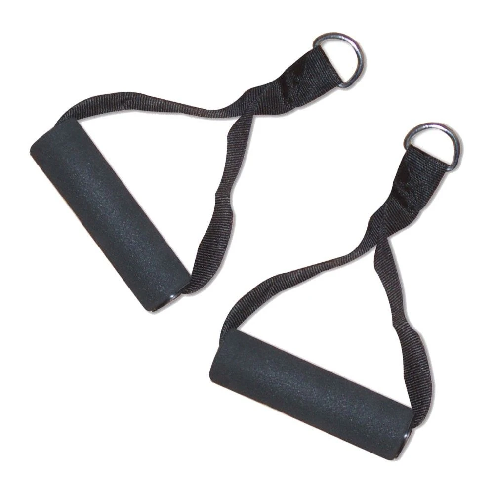 Including 1 lat pulldown bar and 1 pair of canvas stirrup handles, plus, 2 extension chains 6 snap hooks.