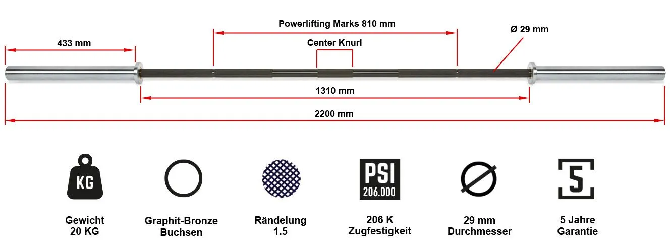- The bar has a black oxide finish and hard-chrome sleeves.