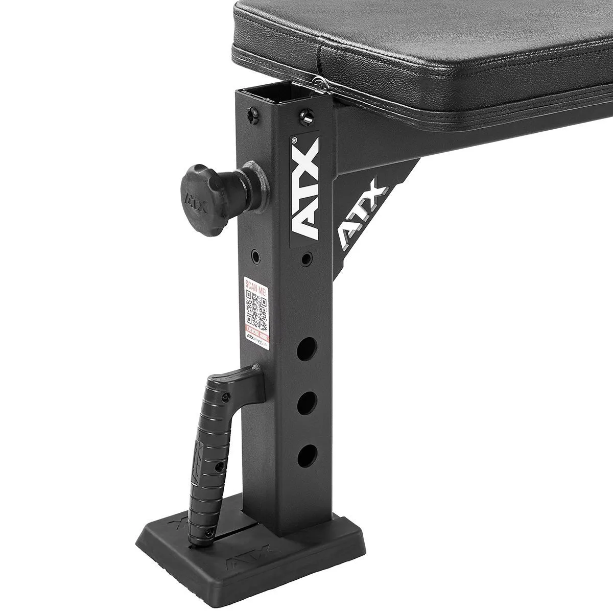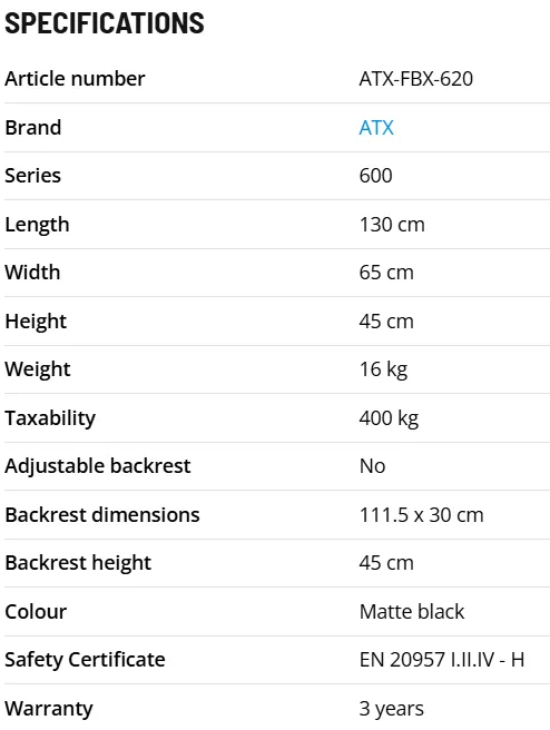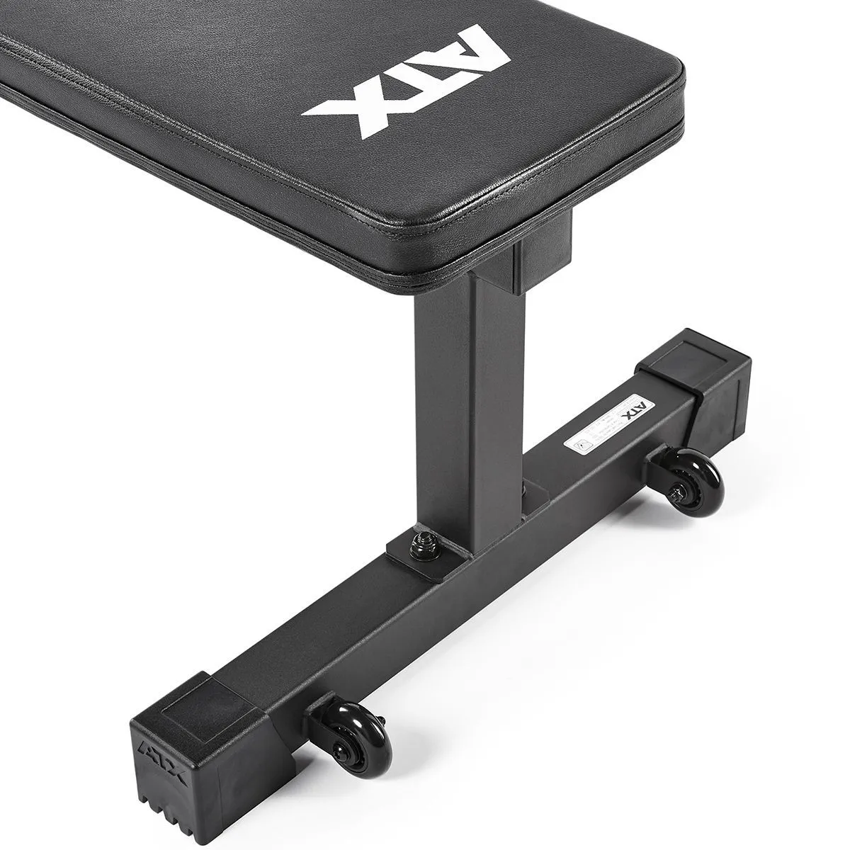 The ATX Flat Bench FBX-620 is our first flat training bench that offers the possibility to attach accessories. You can expand this flat bench with different accessories. It is great for training your legs, arms, abs, and chest. The bench has a stable and wide base and can carry a heavy load of up to 400 kg. Thanks to the handle and wheels, the bench can be easily moved. The sturdy cushion and the non-slip rubber feet allow for comfortable and safe training.
