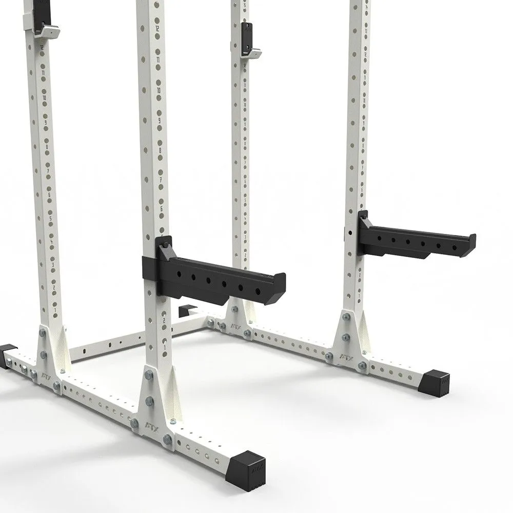 Front safety booms to fit the 700-series series of ATX racks. The tray/ catchment area is 55cm long, giving a decent depth safety. The flip-down safeties can be used inside or outside of the rack and can also be utilised alongside the jammer arms, as a rest/ stopper.