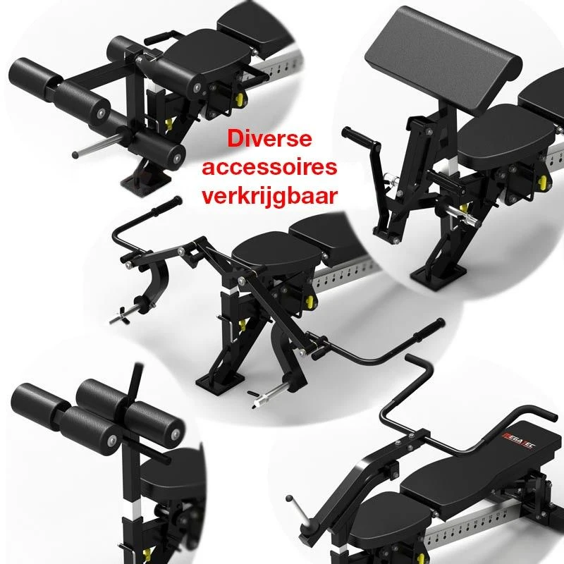 - Adjustable bench and pressing arms, suitable for decline, flat, incline and shoulder press positions.