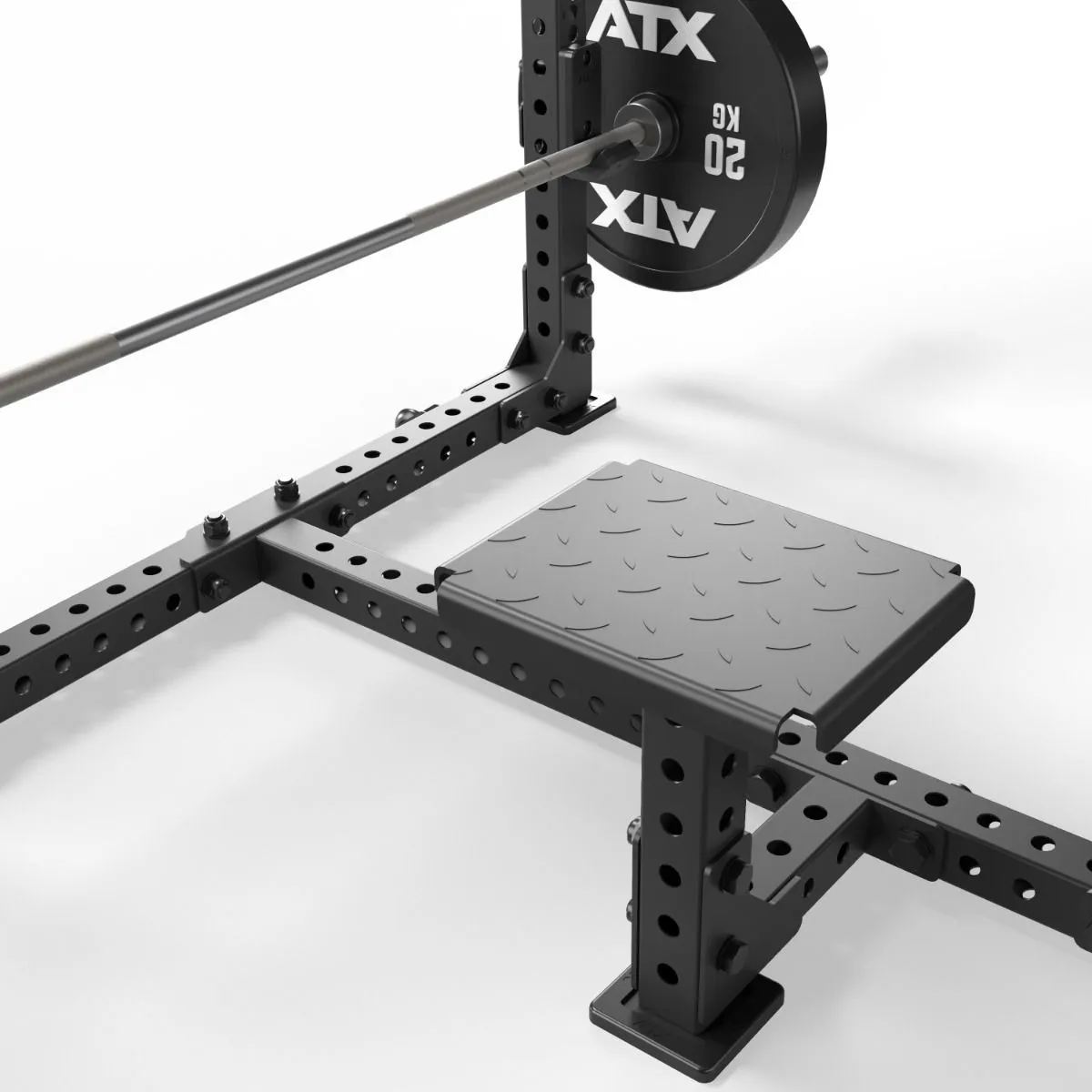 The ATX Seal Row Bench is a classic rowing bench that allows you to perform seal row movements (also called bench pulls) with a barbell or dumbbells. This seal row bench has perfect dimensions and is equipped with a practical step for easy entry and exit. The J-hooks can be easily adjusted to 11 different starting heights. The strategic design of the steel construction on the underside of the cushion ensures that the barbell can be pulled closer to the chest. By using the ATX Cambered Swiss Bar, an even greater range of motion is possible. The cushion is widened at the hips for extra support and good positioning. This device is European certified according to EN 20957 I.II.IV Class S for professional applications.