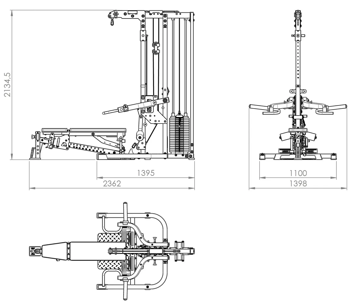 | Load Capacities | Bench 400kg, lat pulldown 160kg, lever arms 250kg (2 x 125kg) |