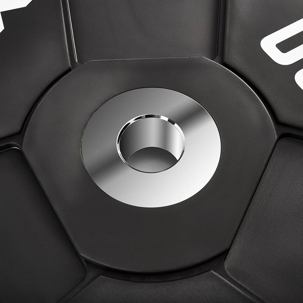 With a weight of 30 kg / disc, the discs also offer a heavy basic weight. The discs are made from the highest quality premium natural rubber, the inner chrome-plated solid steel disc is fully cast and has an internal mount of 50.5 mm.