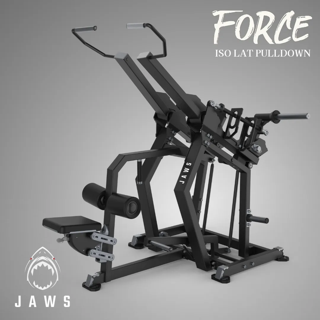 The JAWS Force Iso-Lateral Lat Pulldown is a premium plate-loaded machine designed for athletes, strength enthusiasts, and commercial gym operators who demand the very best in build quality, biomechanics, and functionality. It delivers precision, power, and symmetry in one formidable package, bringing elite-level lat training to any training environment.