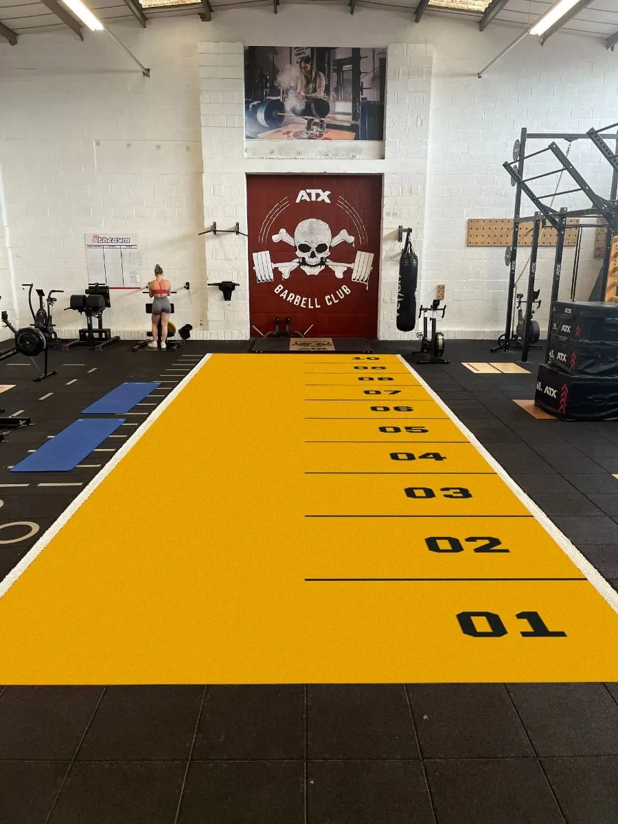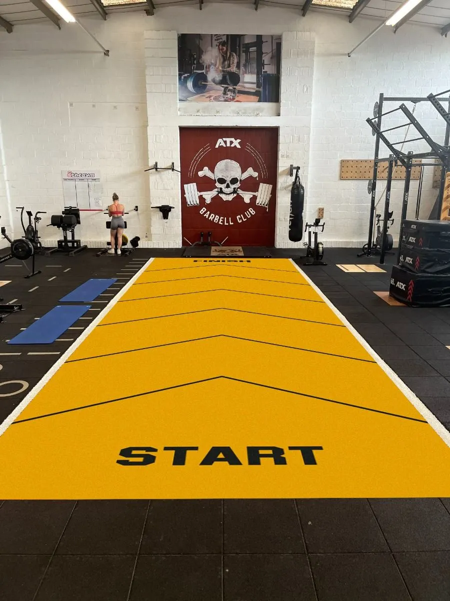 The track is designed to be incredibly hard wearing, offering the ultimate in performance and durability. The longevity of this product is unrivalled. We have two of these bespoke tracks in our own facility (@theGym) – someone has to be doing something incredibly stupid to damage them. IMPORTANT NOTE: If your gym is misused (sharp objects on track, tipping of sleds, etc.), we still have a product for you – we recommend our grass topped rubber tiles.